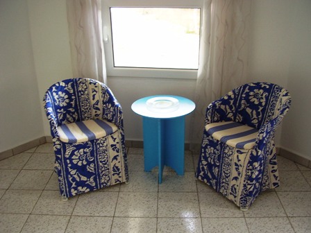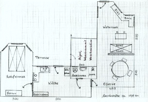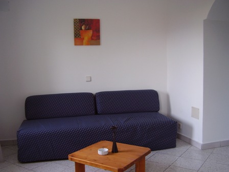 Wohnzimmer mit Durchgang ins gemauerte Schlafzimmer im
